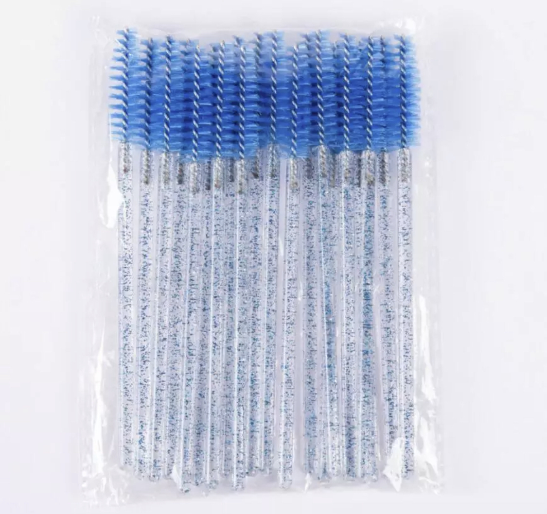 These wands are available in 2 colors, and have glitter wands. There are 50 wands per pack. We love the colors and our clients love the bling. I buy paper straws and cut them in half. I fold down the top 1/4 of the straw and insert the used mascara wand and give it to my client after their service. This helps keep the wand clean in their purses. 50 wands per pack
